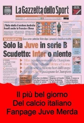 per la prima volta sento uno juventino che da' .GIUSTAMENTE, del coglione a moggi, che con uno squadrone stellare sentiva bisogno di chiudere gli arbitri negli spogliatoio per vincere scudetti che avrebbe vinto comunque . Magari ne avrebbe vinto uno o due in meno (tipo quello famoso del fallo su ronaldo), ma in maniera pulita. Invece per volere troppo vi ha portato in B, e ha rischiato di farvi fallire. E ancora tanti di voi lo difendono.... fosse stato il mio direttore generale l'avrei linciato.