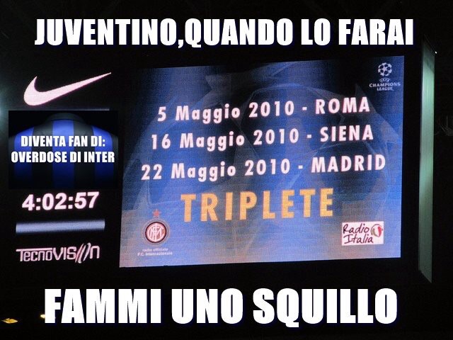 Horseman ha scritto:Juventino va dallo psicologo dopo aver letto l'albo d'oro dell'Inter e scoprendosi tutto d'un tratto in una notte di fine primavera afflitto dal complesso di inferiorità.