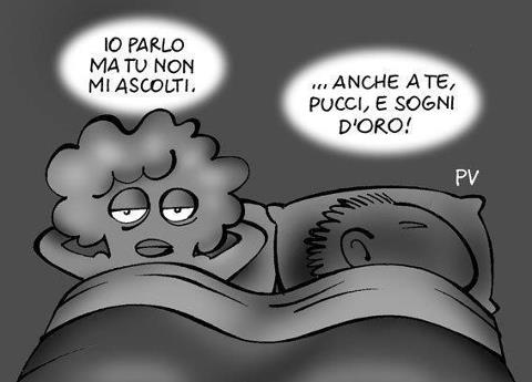 ”Perchè altrimenti dove dovrei dormire!” Chiede il marito, sempre più confuso.